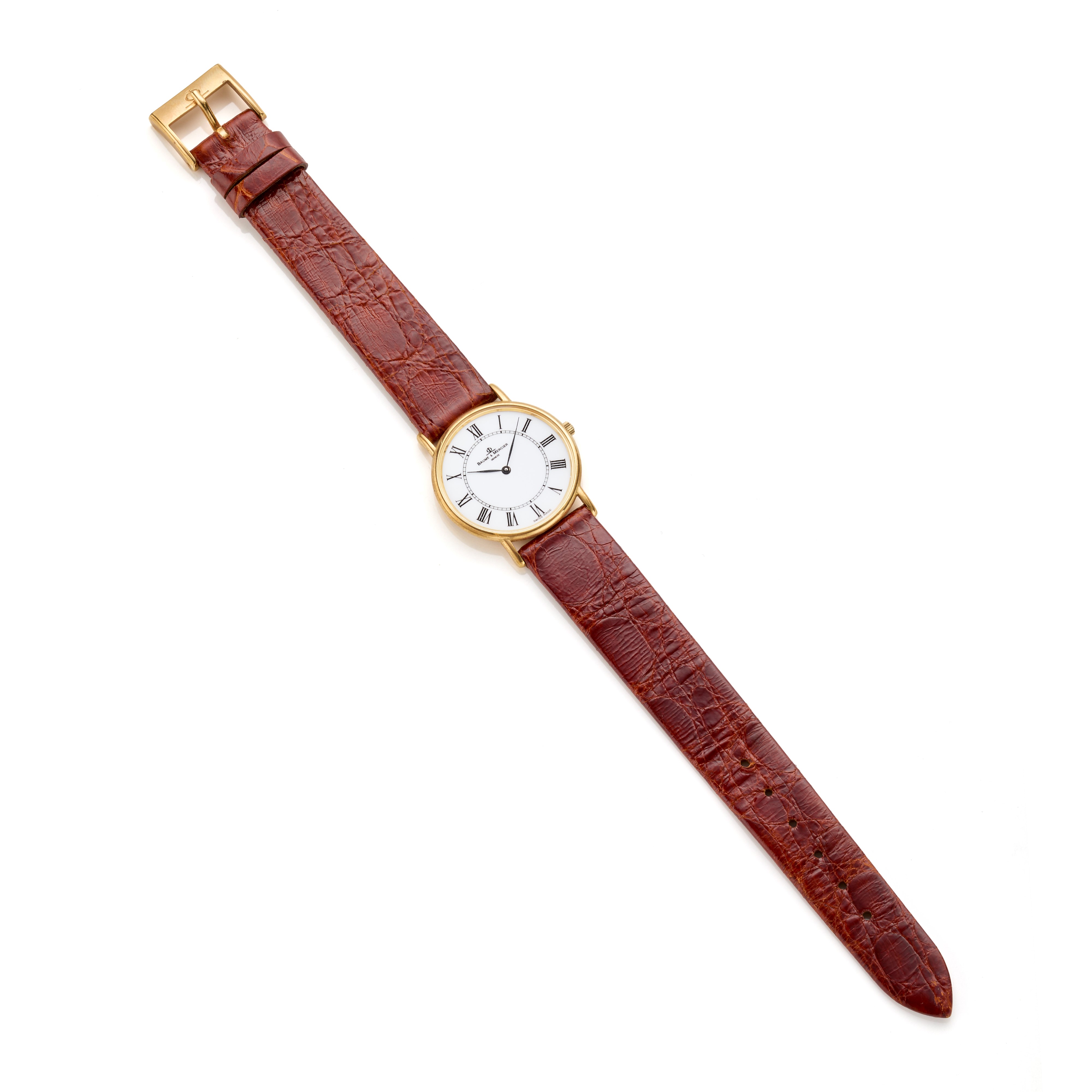 Baume & Mercier, wristwatch. 18 Kt yellow gold case with original leather strap and gold plated buckle. Quartz movement in need of new battery. Within its original box. Very good conditions.