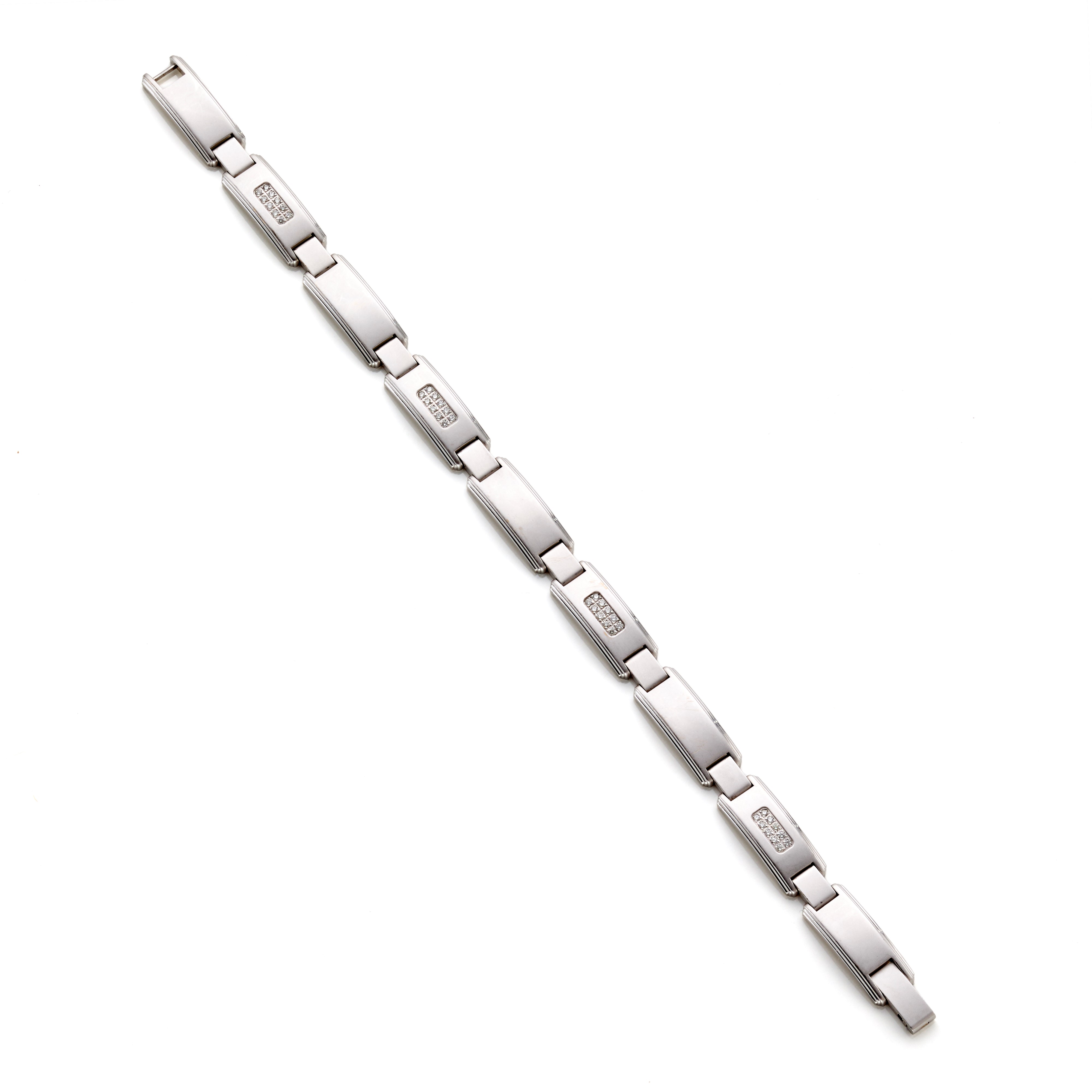 Bracciale modulare Tiffany & Co in oro bianco 18 Kt lucido e satinato, rifinito con diamanti rotondi per complessivi circa 0,15 ct.