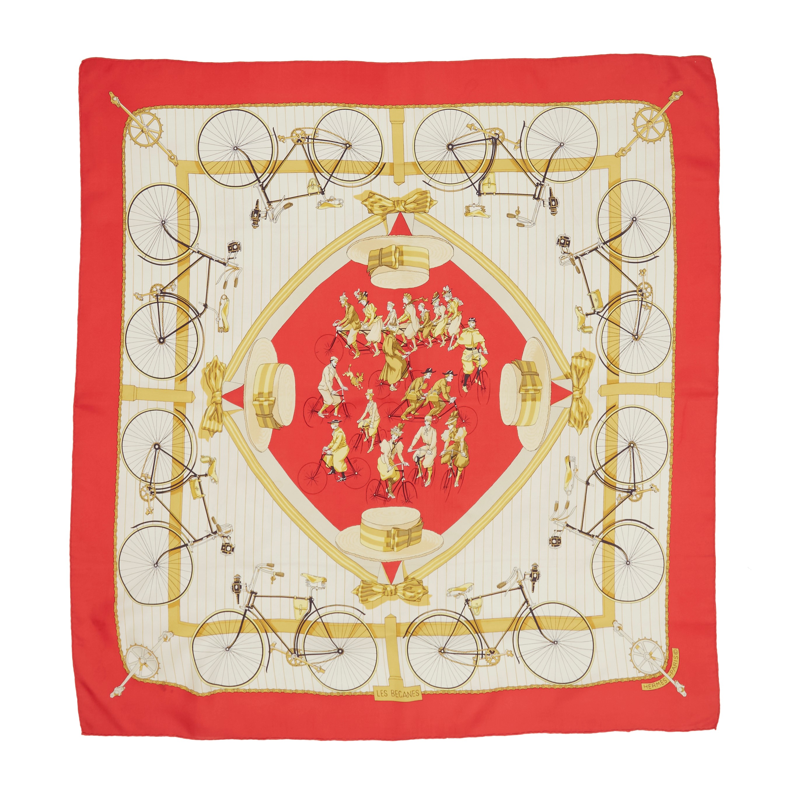Foulard Hermès vintage in seta "Les Bécanes" disegnato da Hugo Grygkar, 1954. Ottime condizioni.