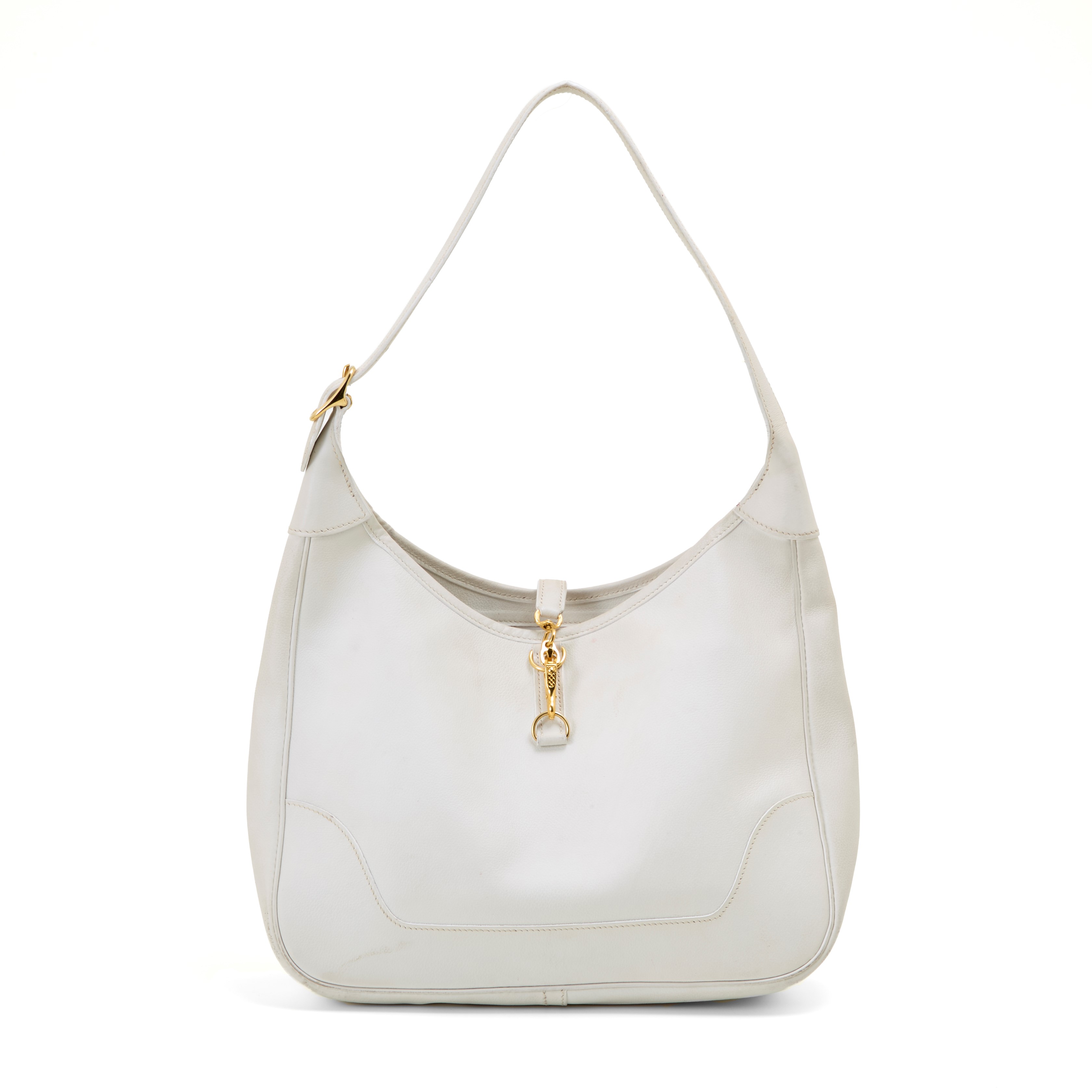 Hermès Trim in pellame Courchevel Blanc metalleria dorata, 1995. Unico scompartimento interno. Completa di dustbag originale. Buone condizioni.