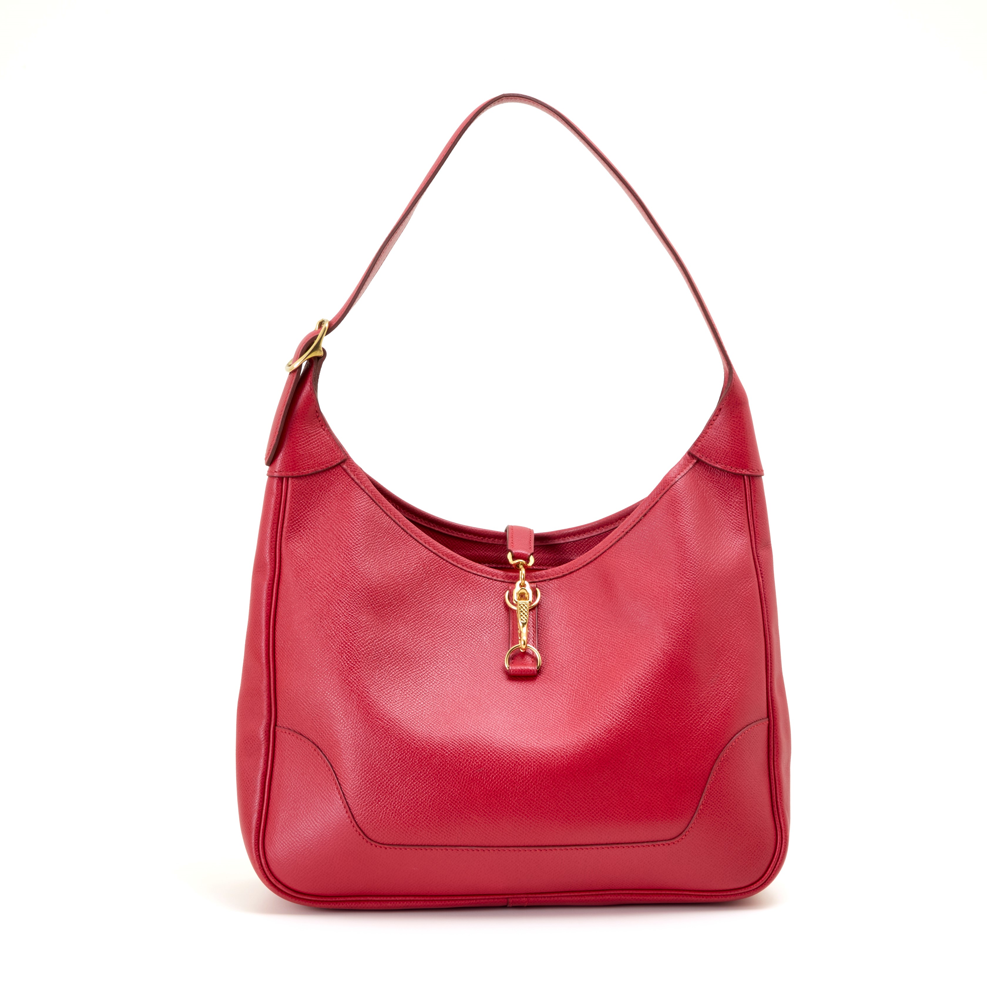 Hermès Trim in pellame Courchevel Rouge Casaque con metalleria dorata, 1995. Unico scompartimento interno. Completa di dustbag originale. Condizioni molto buone.