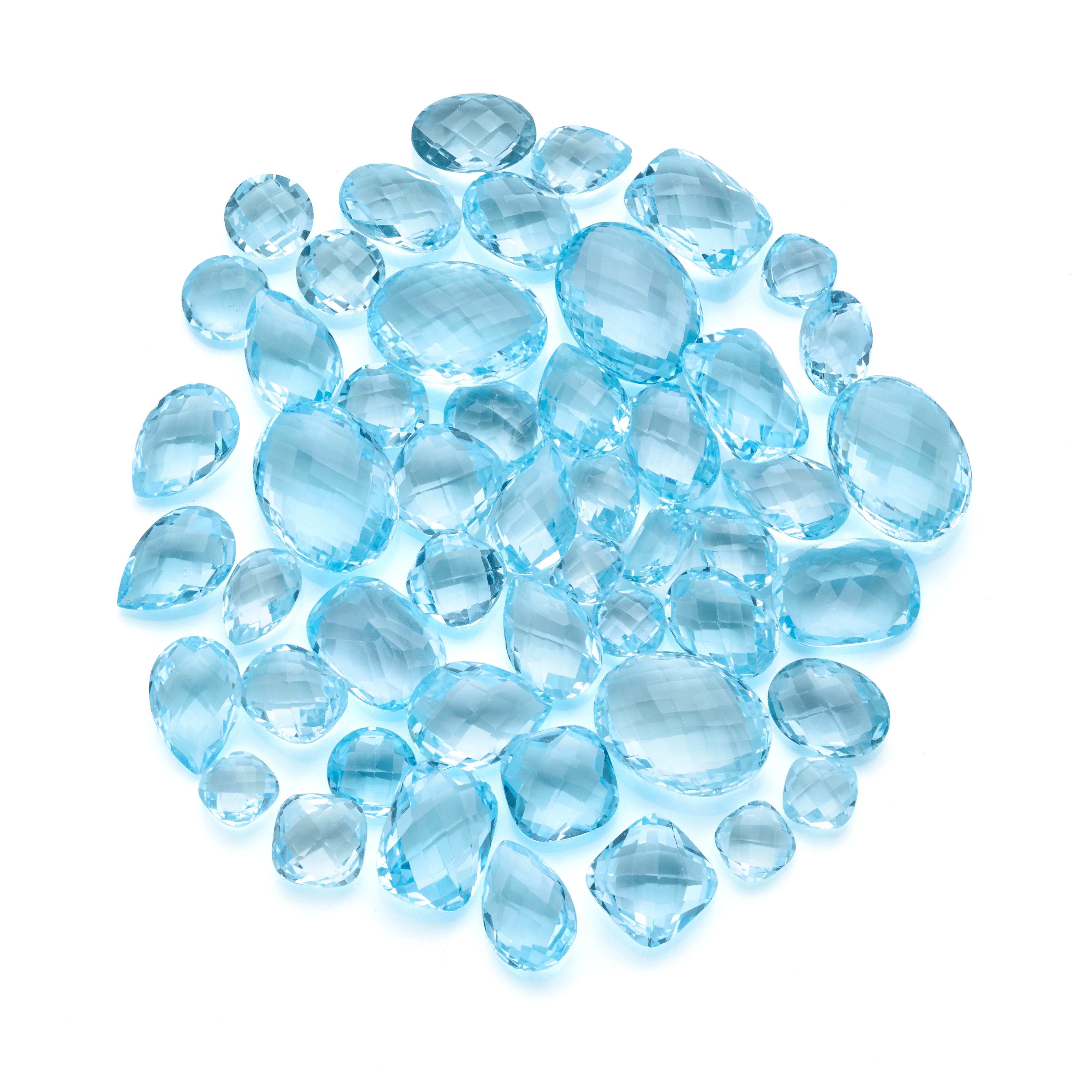 Lotto di topazi ovali a goccia e rotondi sfaccettati per complessivi 382,60 ct.