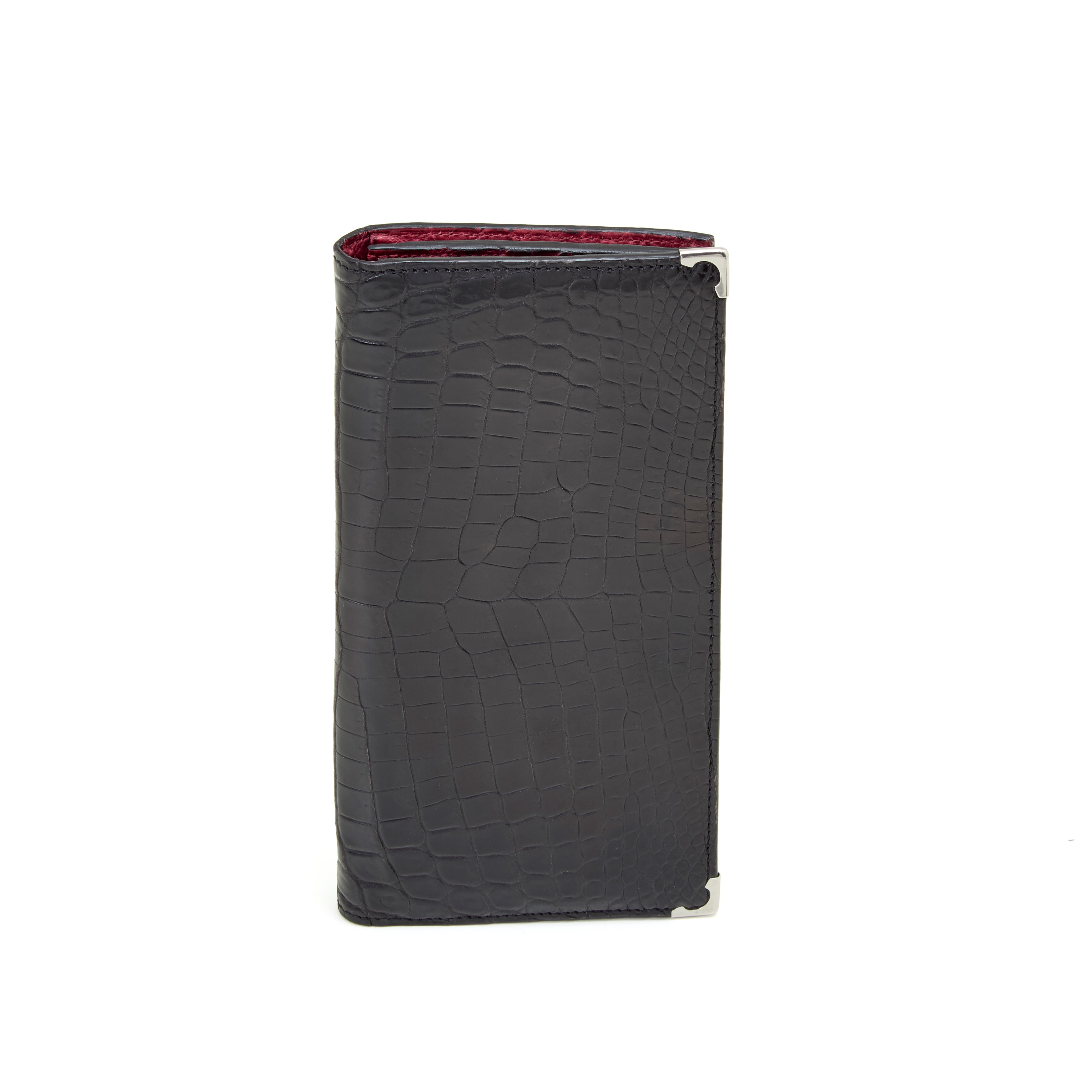 Portafoglio Cartier in coccodrillo e dettagli con finitura in palladio. Ottime condizioni.