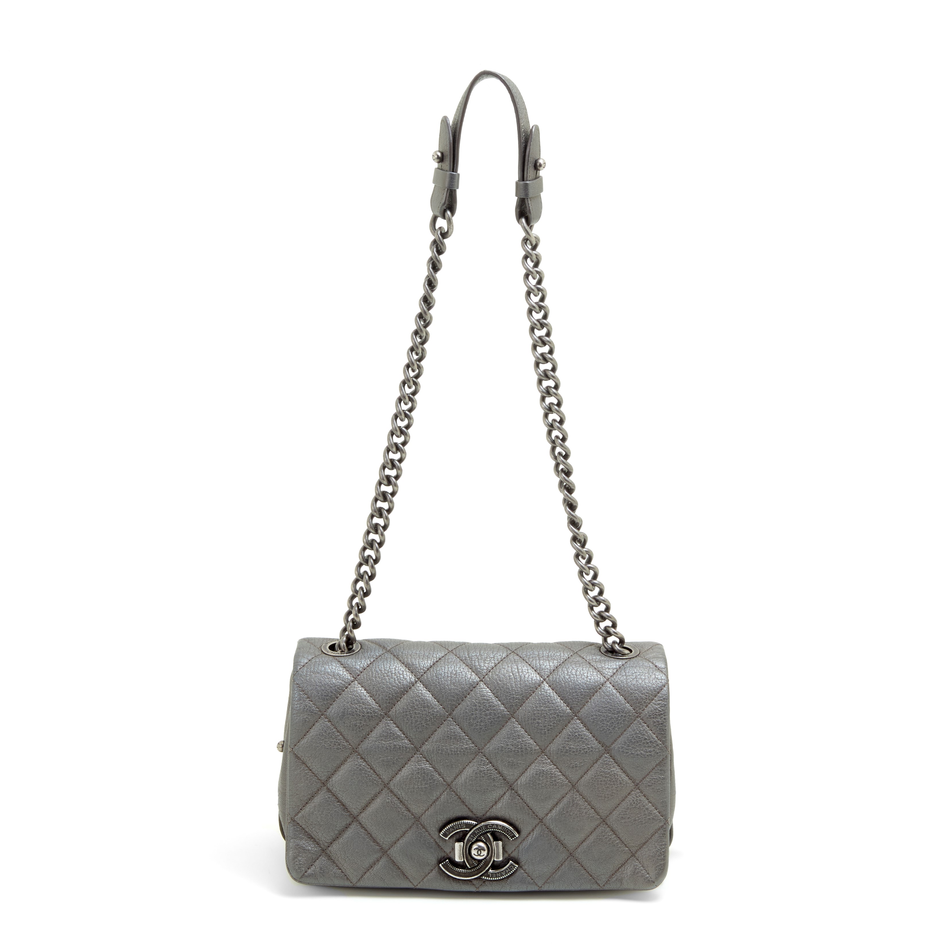 Chanel 31 Rue Cambon in quilted metallic grey Caviar leather with ruthenium hardware, 2015/2016. Adjustable shoulder strap and a bellow poket on the back. Single internal compartment. Very good conditions.