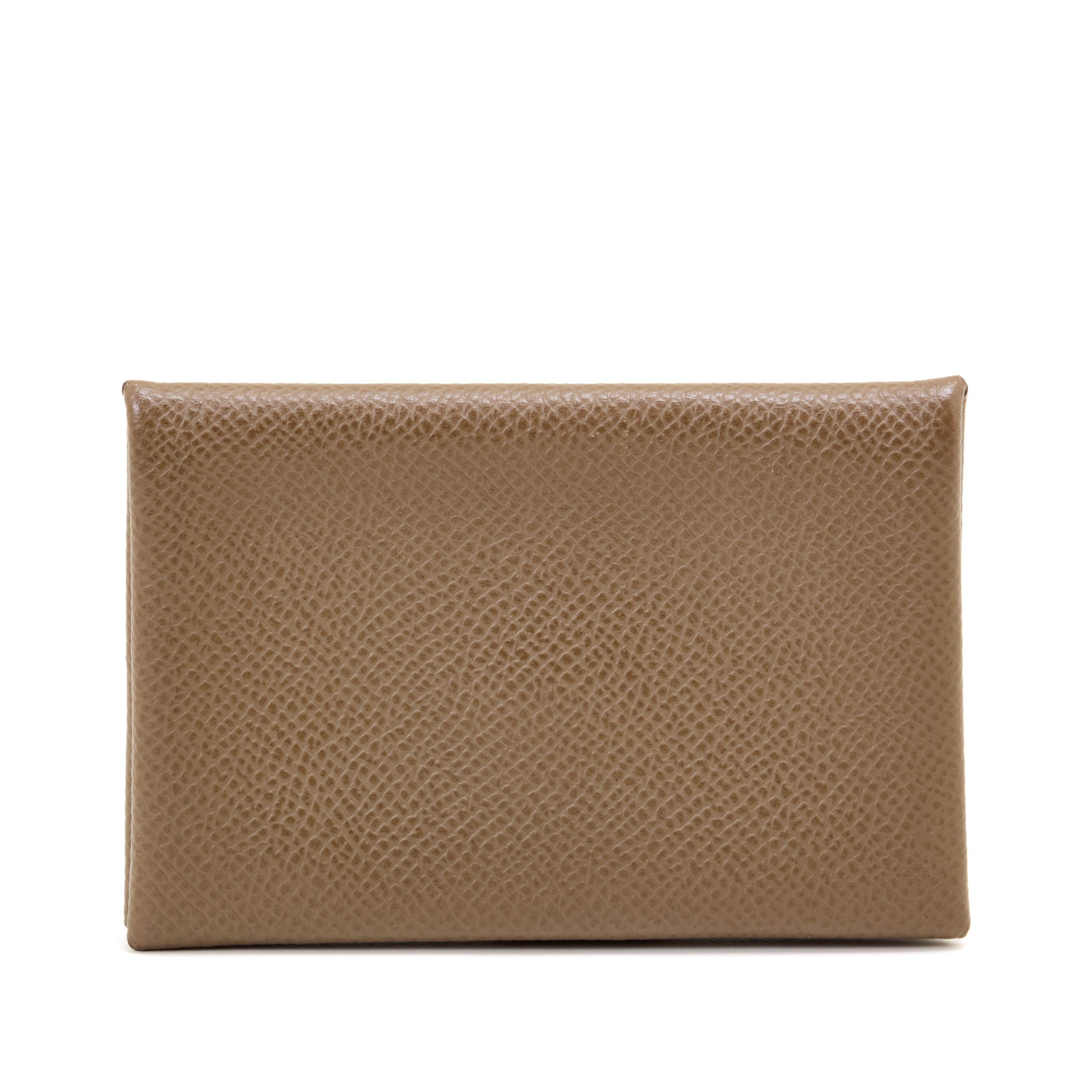 Hermès card holder with button in Epsom Etaupe leather, 2009. Very good conditions.