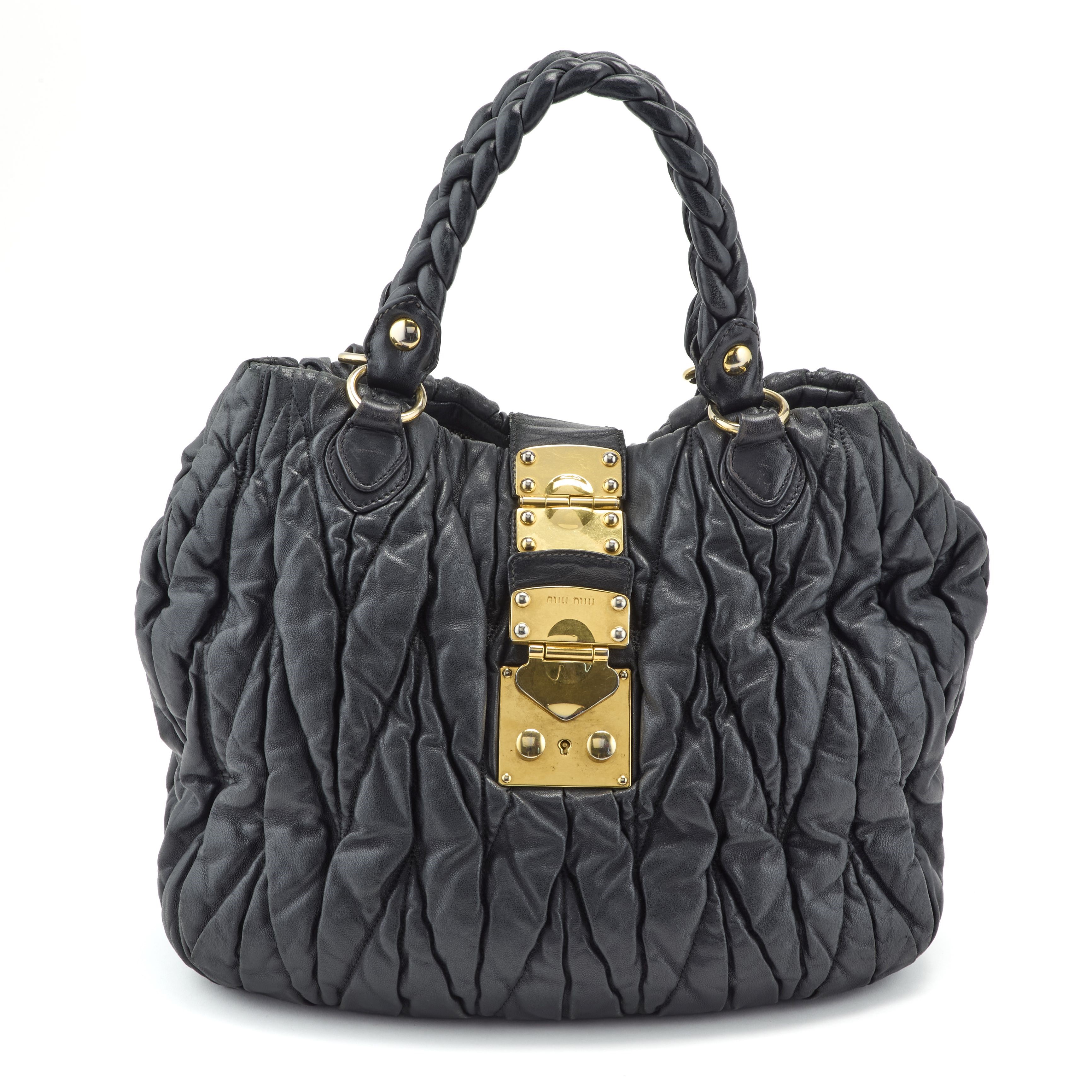 Miu Miu in pelle nera matelassè con iconica chiusura in metallo dorato. Buone condizioni.