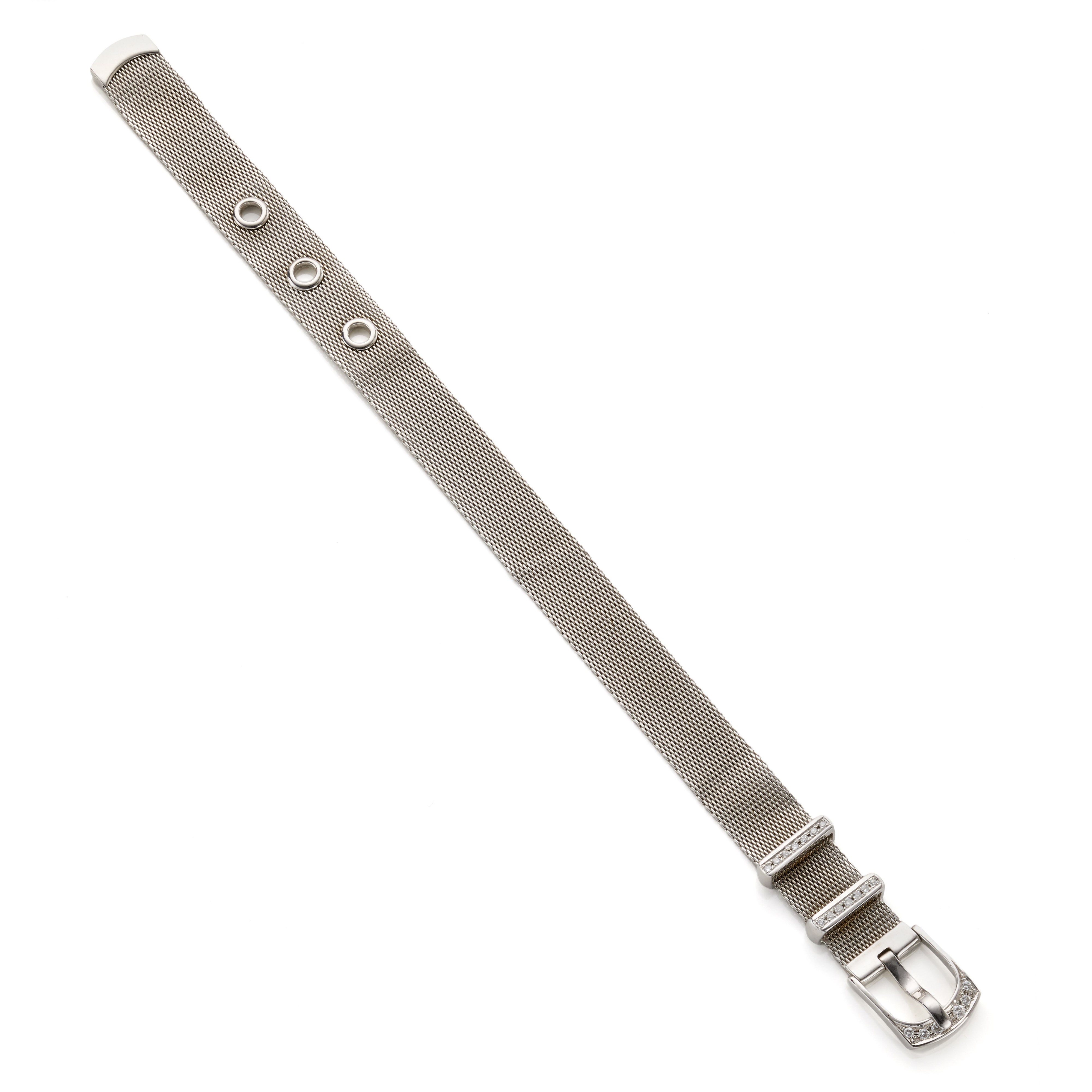 Bracciale in oro bianco 18 Kt rifinito con diamanti rotondi per complessivi circa 0,20 ct.