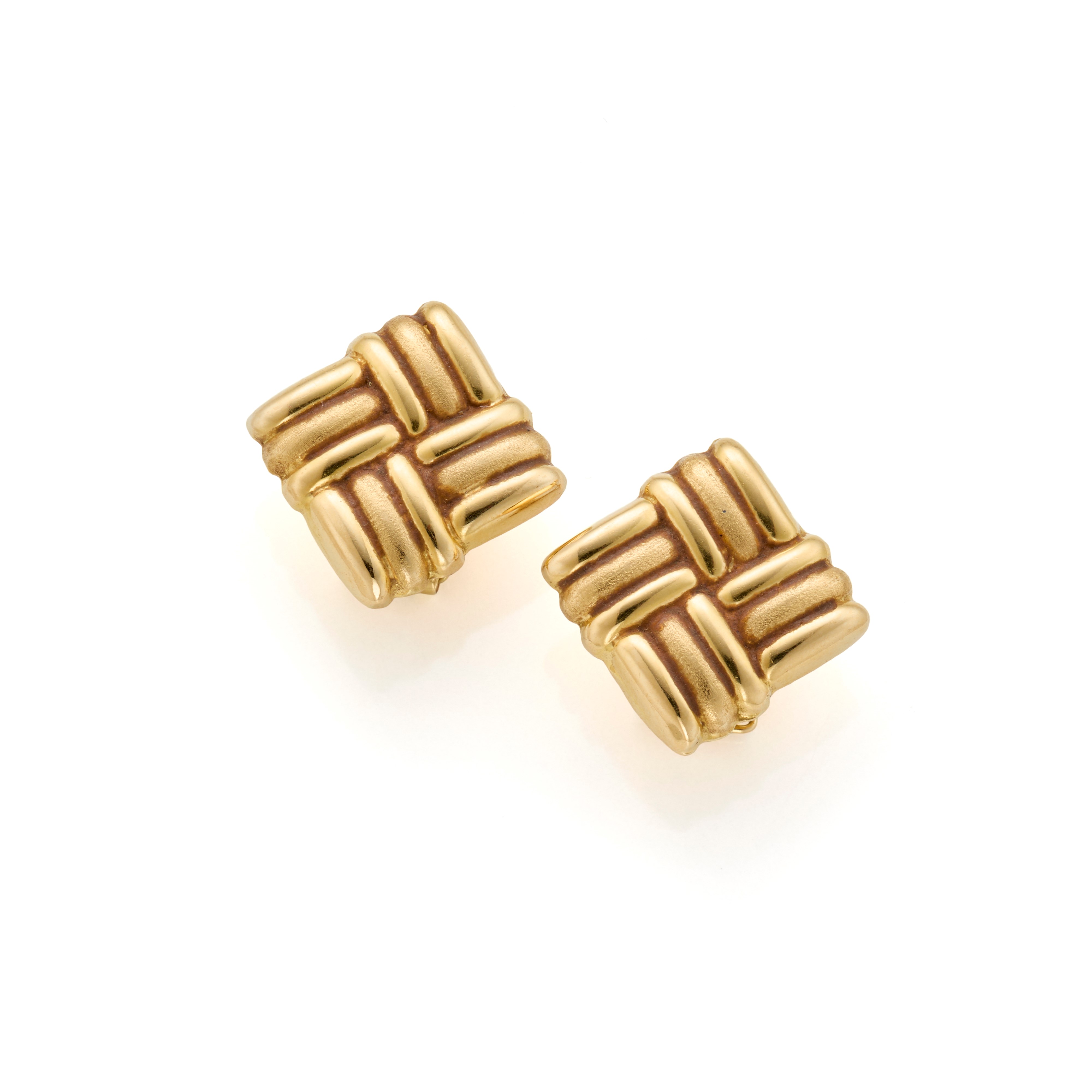 Orecchini in oro giallo 18 Kt con motivo a intreccio.