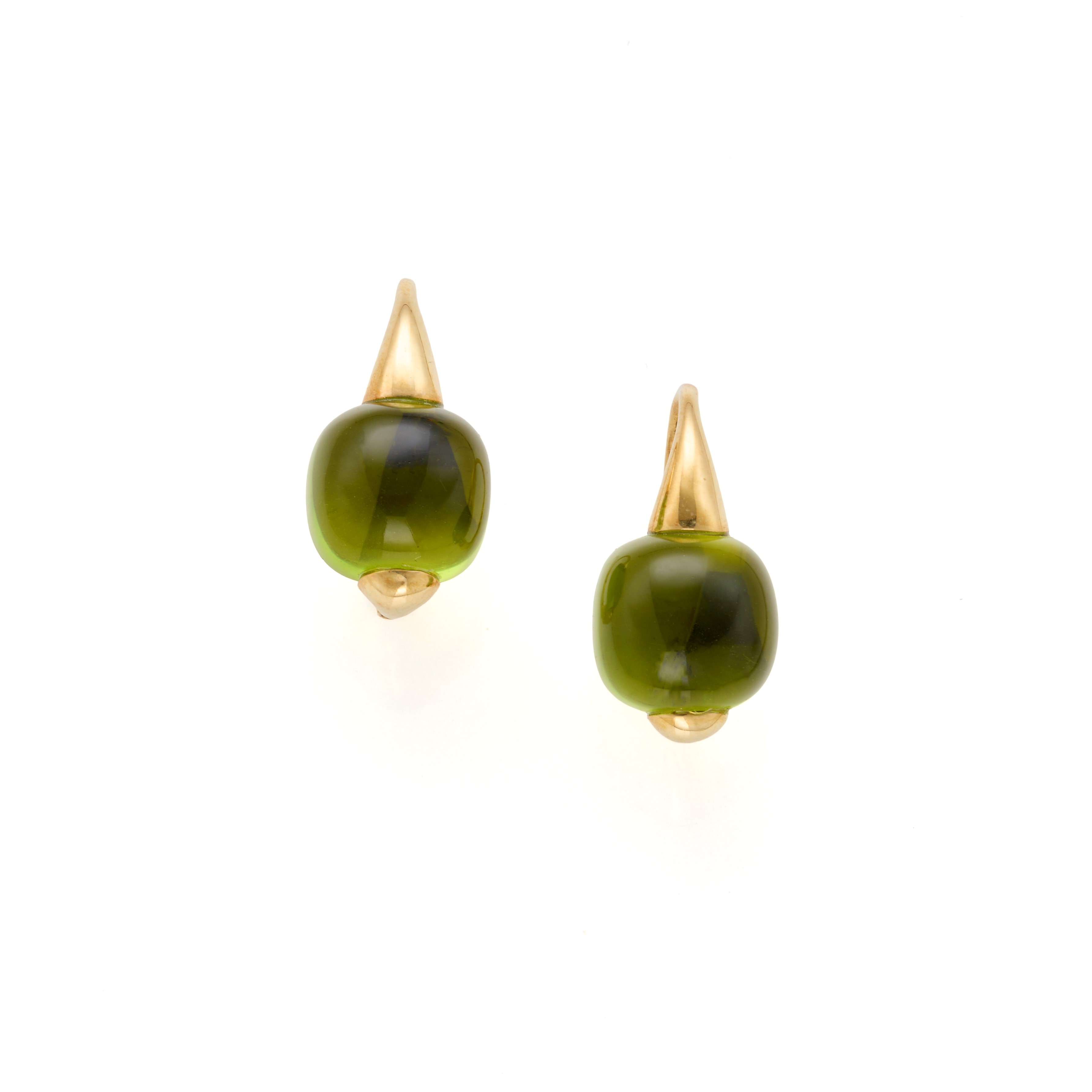 Orecchini in oro giallo 18 Kt con paste vitree cabochon.