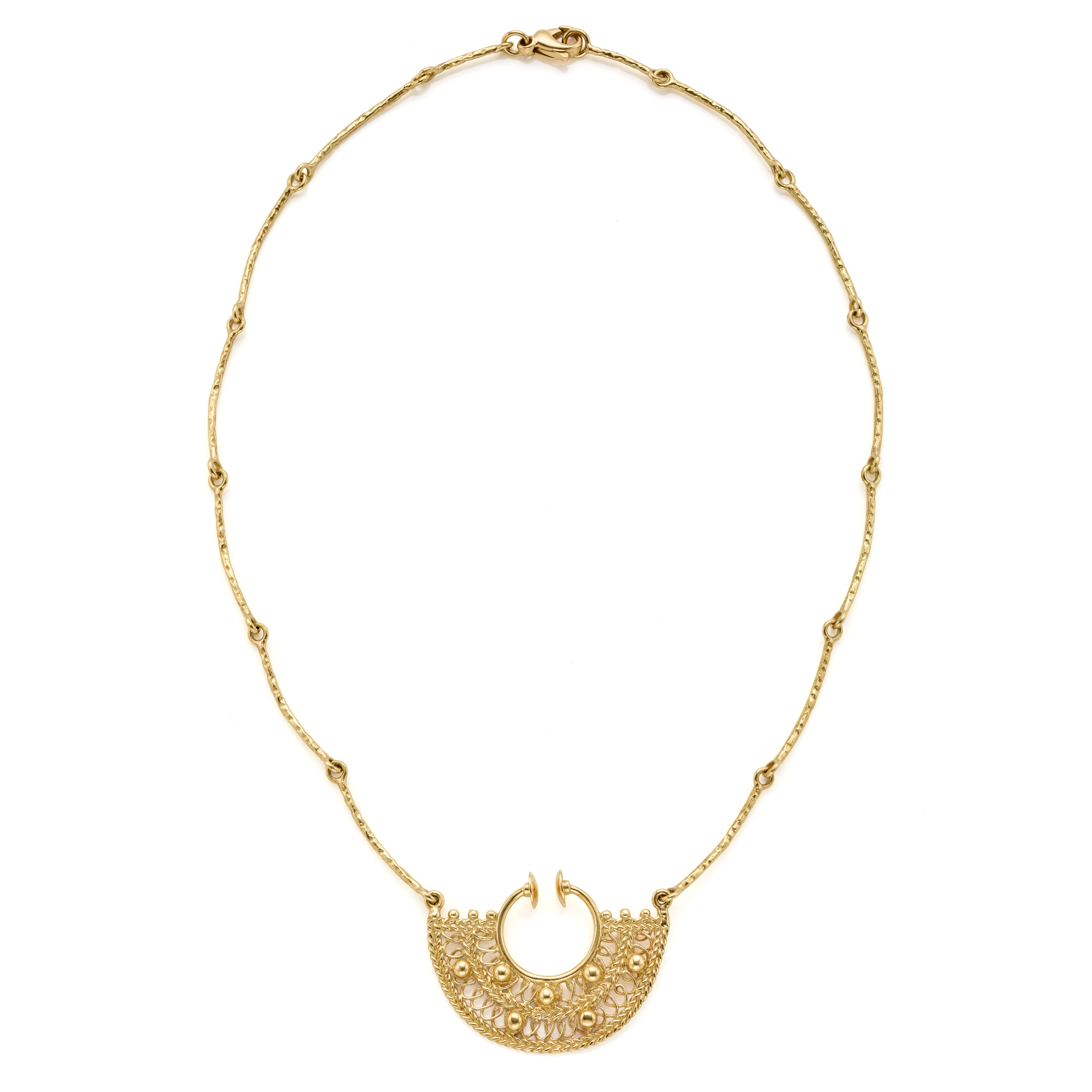 18 Kt yellow gold necklace with central nose ring.