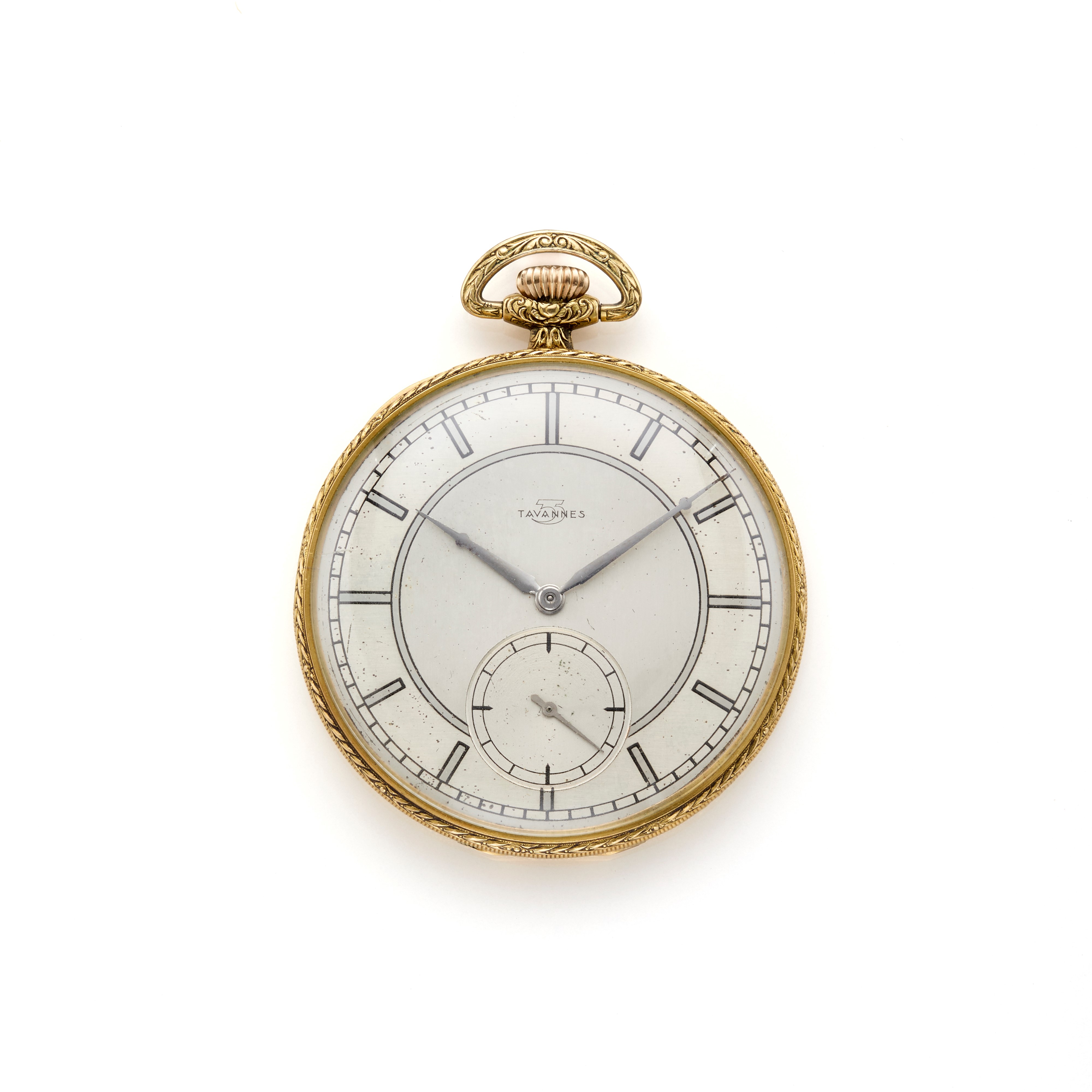 Tavannes 18 Kt yellow gold pocket watch with manual winding movement. Good condition.