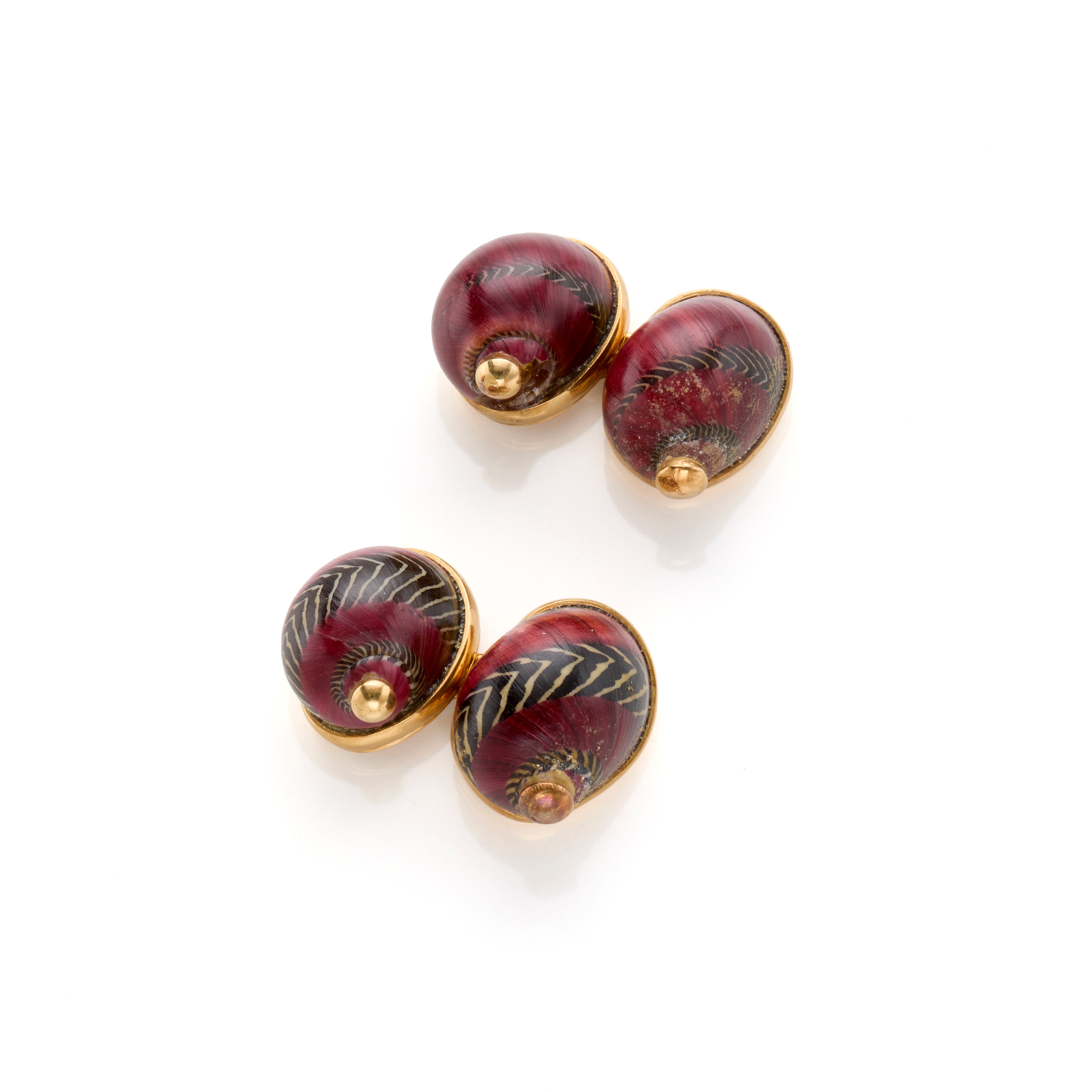 Gemelli in oro giallo 18 Kt con conchiglie.