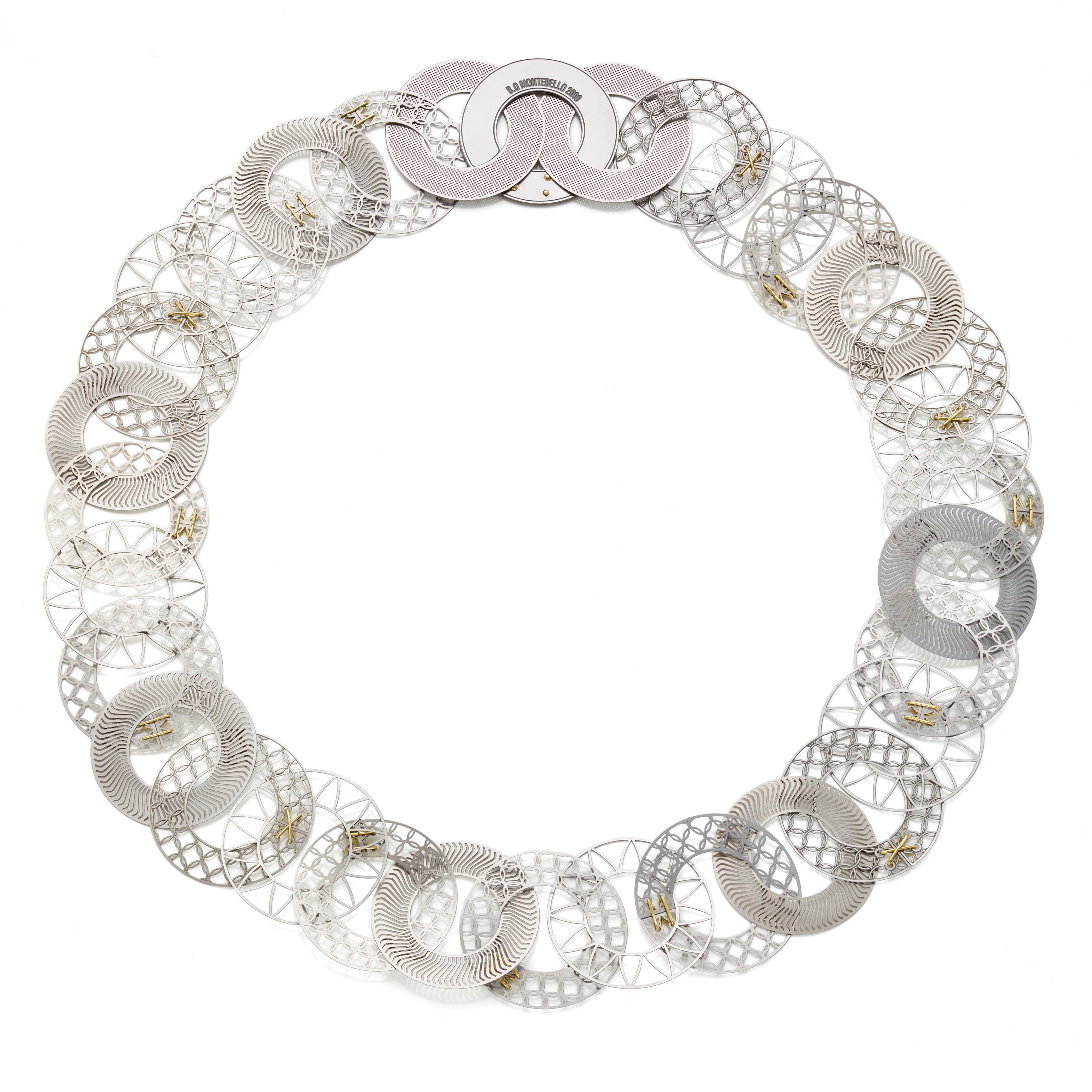 Collier a colletto Montebello, collezione Superleggeri, in acciaio e oro giallo 18 Kt. Corredato di astuccio originale.