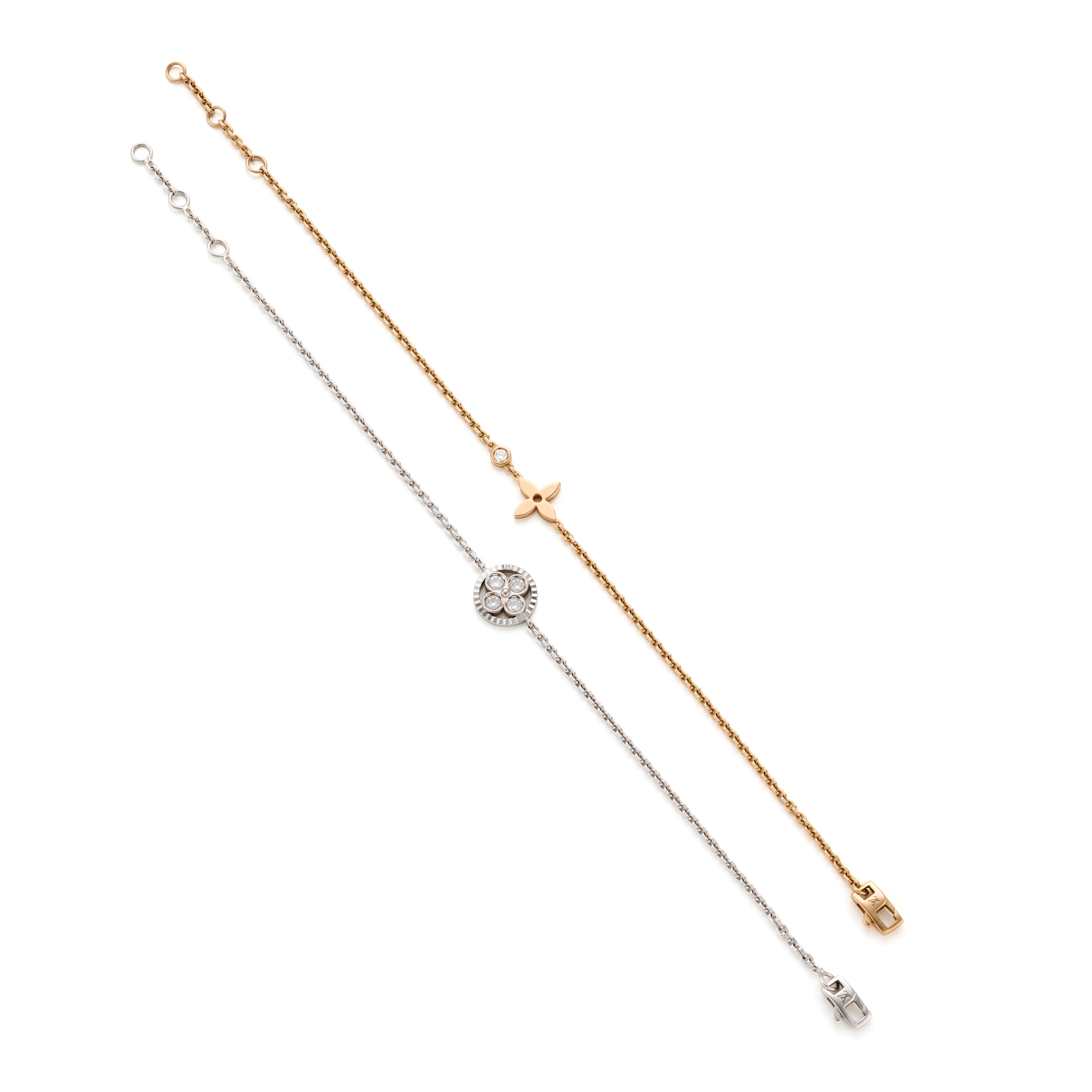 Lotto composto da due bracciali Louis Vuitton collezione Idylle Blossom in oro giallo e bianco 18 Kt rifiniti con diamanti per complessivi circa 0,25 ct.