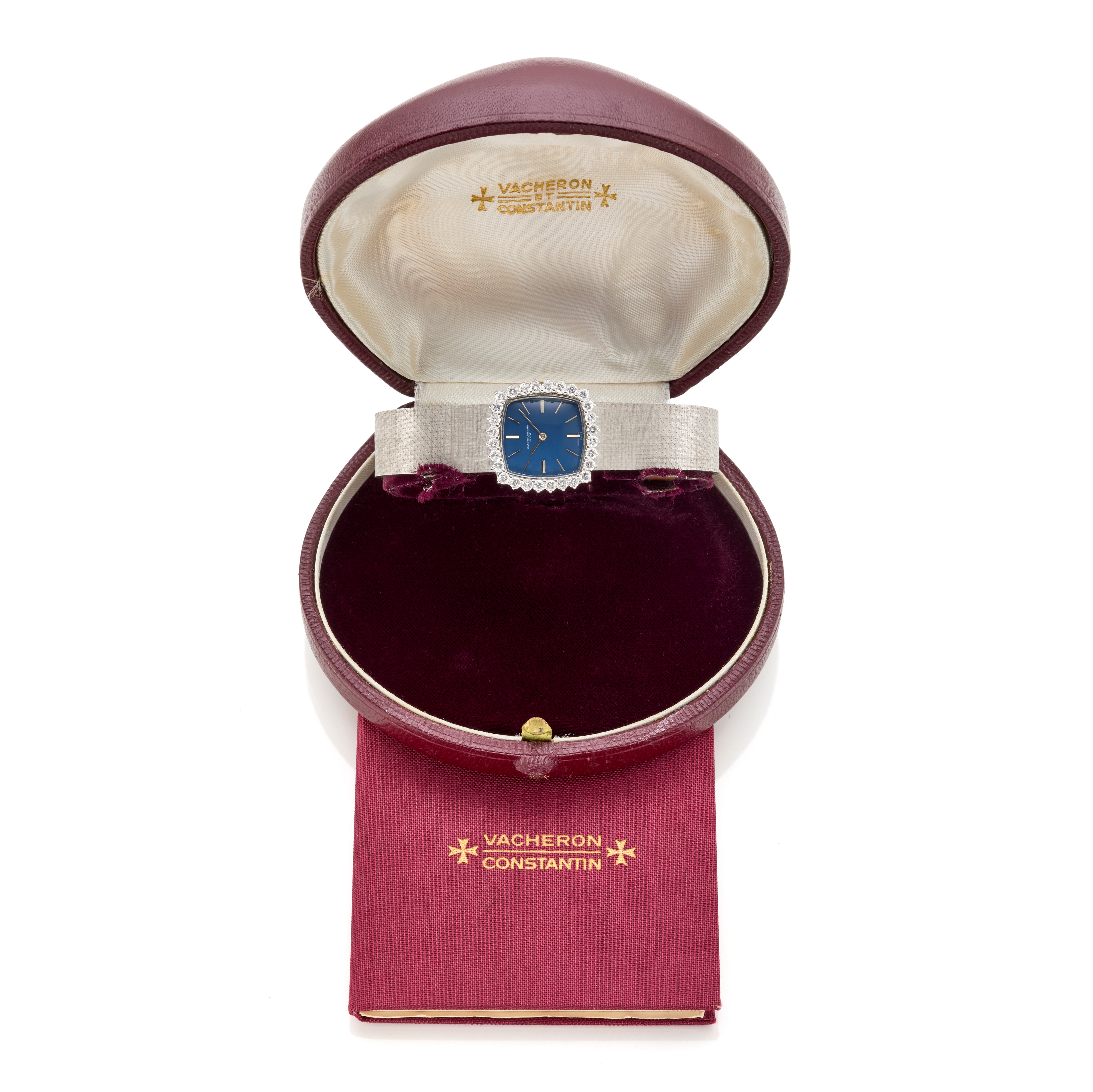 Vacheron Constantin Lady, ref. 7288, anni '60. Cassa e bracciale integrato in oro bianco 18 Kt, lunetta con diamanti aggiunta successivamente. Movimento meccanico a carica manuale. Buone condizioni. Corredato di scatola e garanzia.