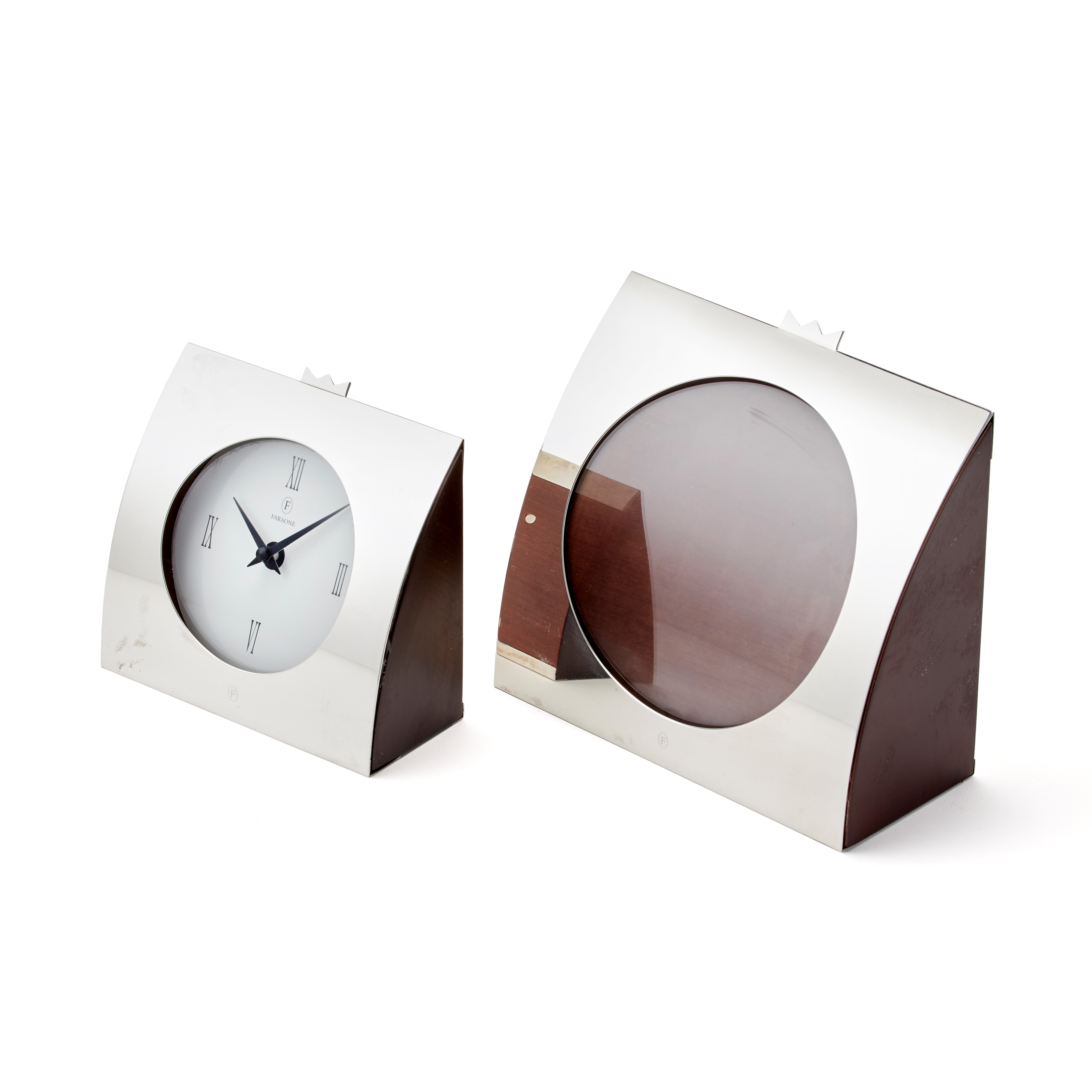 Lotto in argento composto da un orologio da tavolo e un portafoto firmati Faraone.